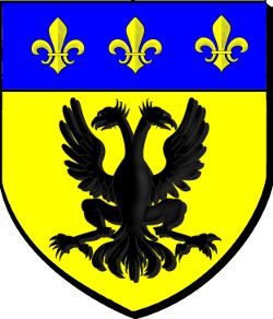 d'or à une aigle bicéphale de sable, au chef d'azur à trois fleurdelys d'or