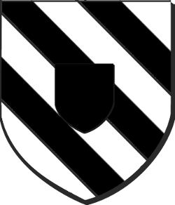 d'argent à trois bandes de sable, à l'écusson du même brochant sur le tout
