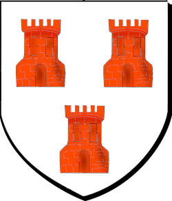 d'argent à trois tours crénelées de cinq pièces de gueules maçonnées de sable