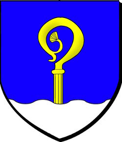 d'azur à une crosse d'or issant d'une champagne ondée d'argent