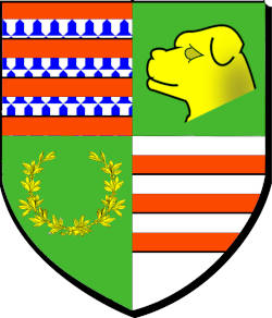 écartelé: au premier, de gueules à trois fasces de vair ; au second, de sinople à une tête de chien d'or ; au troisième, de sinople à une couronne de laurier d'or ; au quatrième, d'argent à trois fasces de gueules