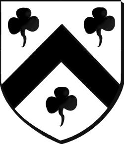 d'argent au chevron de sable, accompagné de trois trèfles du même