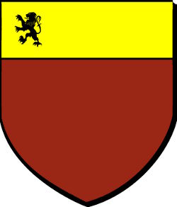 de gueules, au chef d'or, chargé à dextre d'un lion de sable