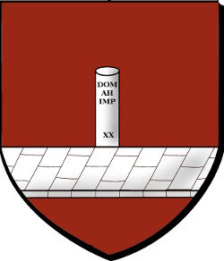 de gueules à une voie romaine pavée d'argent posée en fasce abaissée, surmontée d'une borne miliaire du même chargée des inscriptions DOM AHE IMP XX en grandes lettres de sable