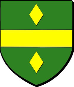 de sinople à une fasce d'or, accompagnée de deux losanges du même, une en chef et une en pointe