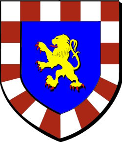 d'azur au lion d'or, armé et lampassé de gueules, à une bordure componée d'argent et de gueules