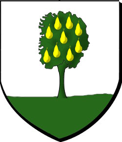 d'argent à un poirier de sinople posé sur une terrasse du même, fruité d'or
