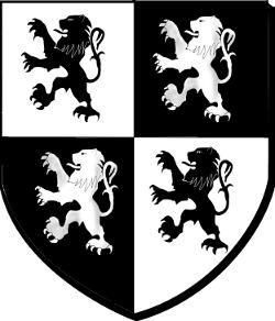écartelé d'argent et de sable, à quatre lions de l'un en l'autre