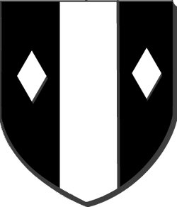 de sable, à un pal d'argent accompagné de deux losanges du même