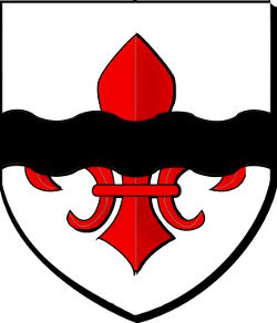 d’argent à une fleurdelys de gueules, à une fasce ondée de sable brochant sur le tout