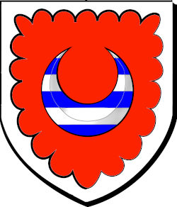 de gueules au croissant burelé d'argent et d'azur ; à une bordure engrêlée d'argent