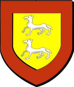 d'or à deux loups cousus d'argent posés l'un sur l'autre, et à une bordure de gueules