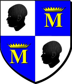 écartelé; au 1° et 4°, d'argent à une tête de maure; au 2° et 3°, d'azur à une lettre M sommée d'une couronne le tout d'or