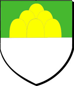 coupé de sinople au mont à six coupeaux d'or issant de la partition ; et d'argent plain
